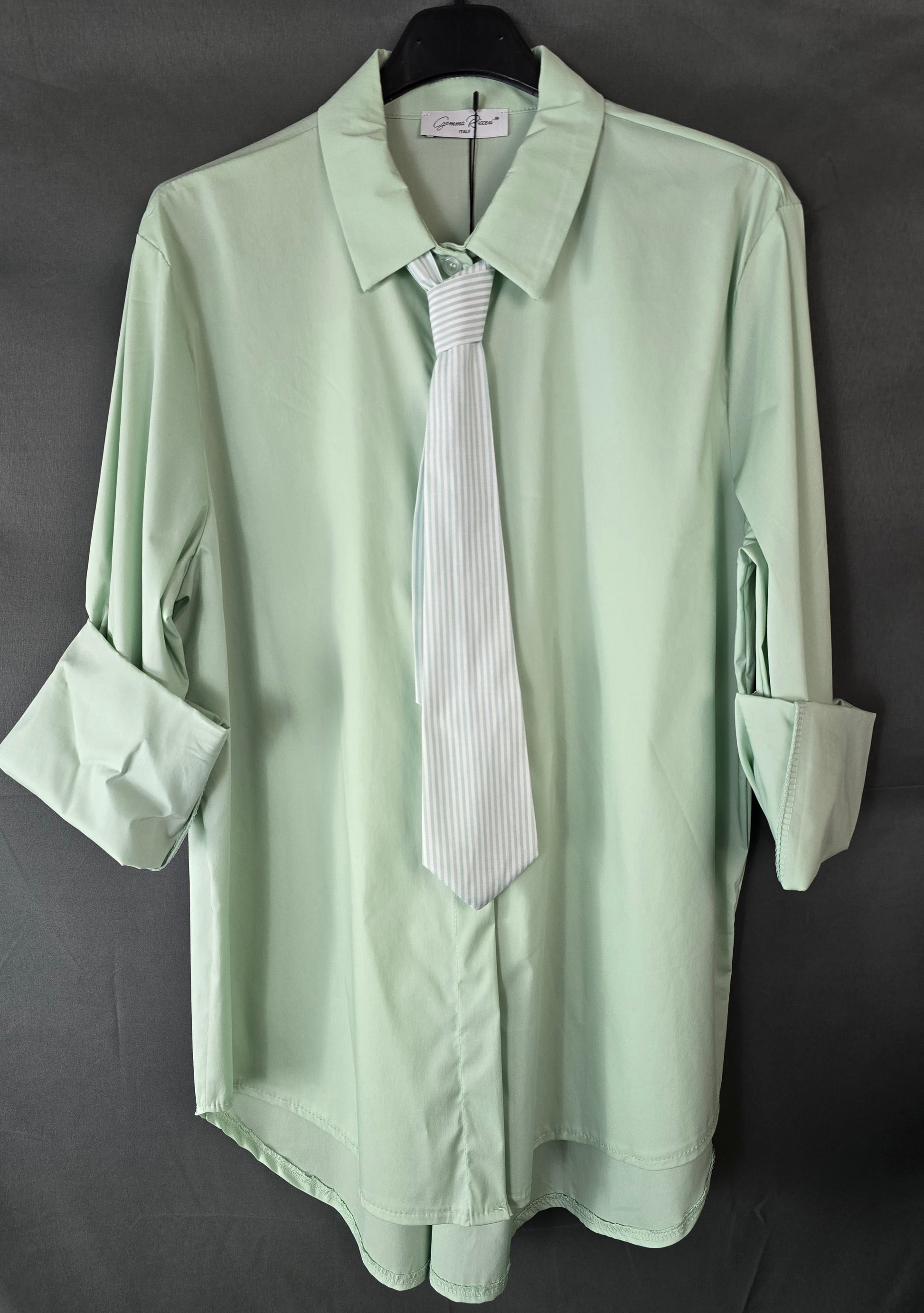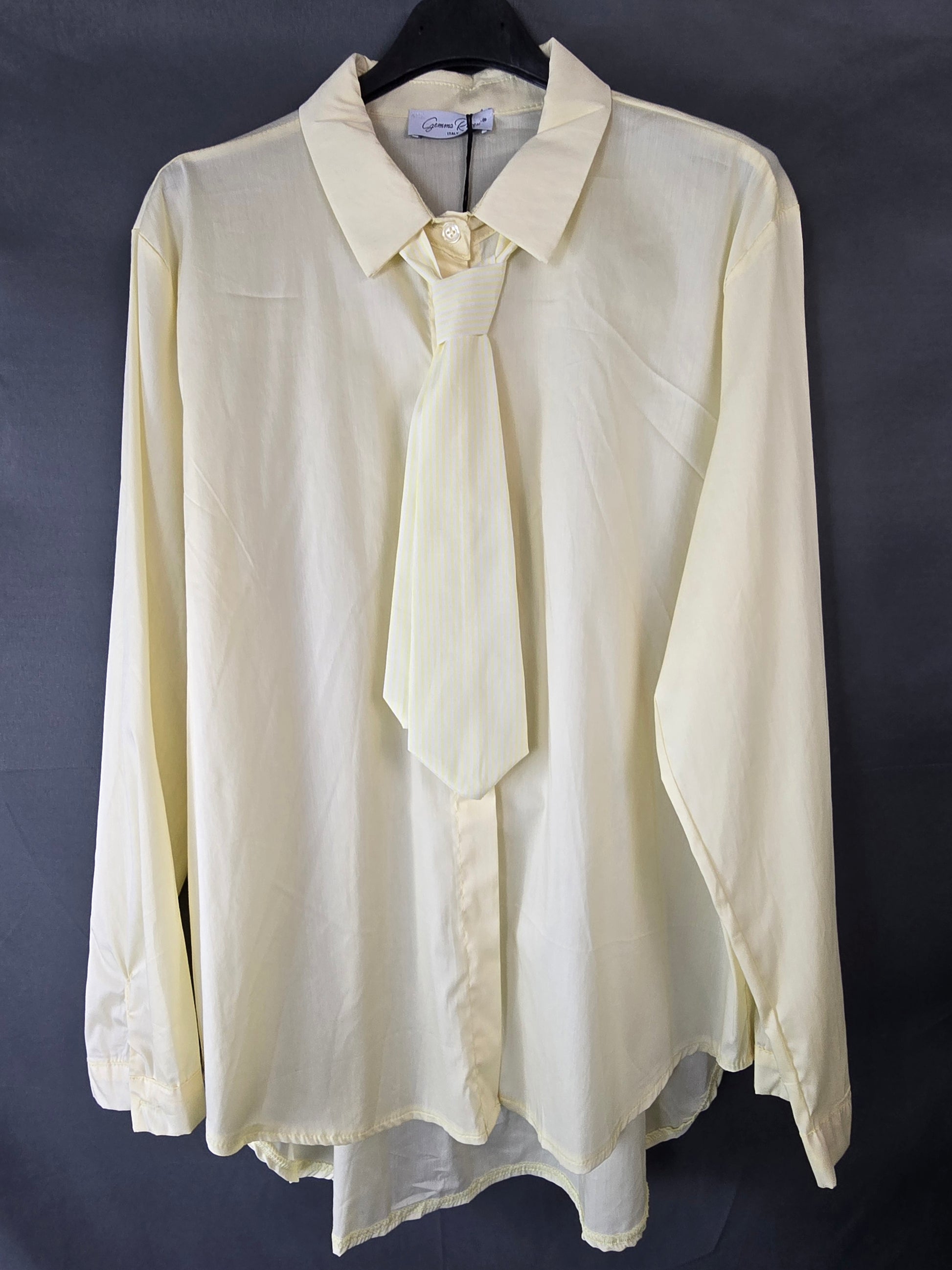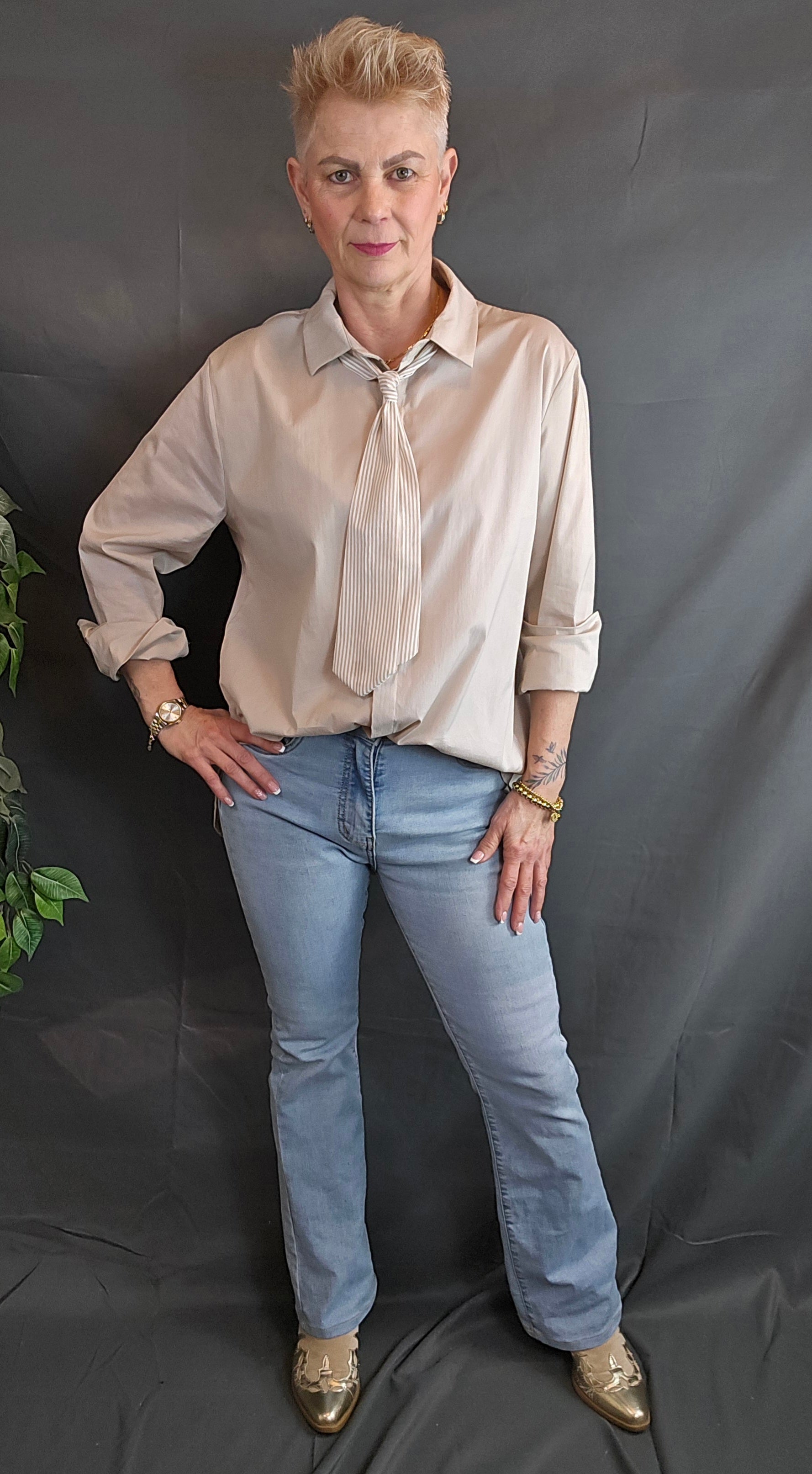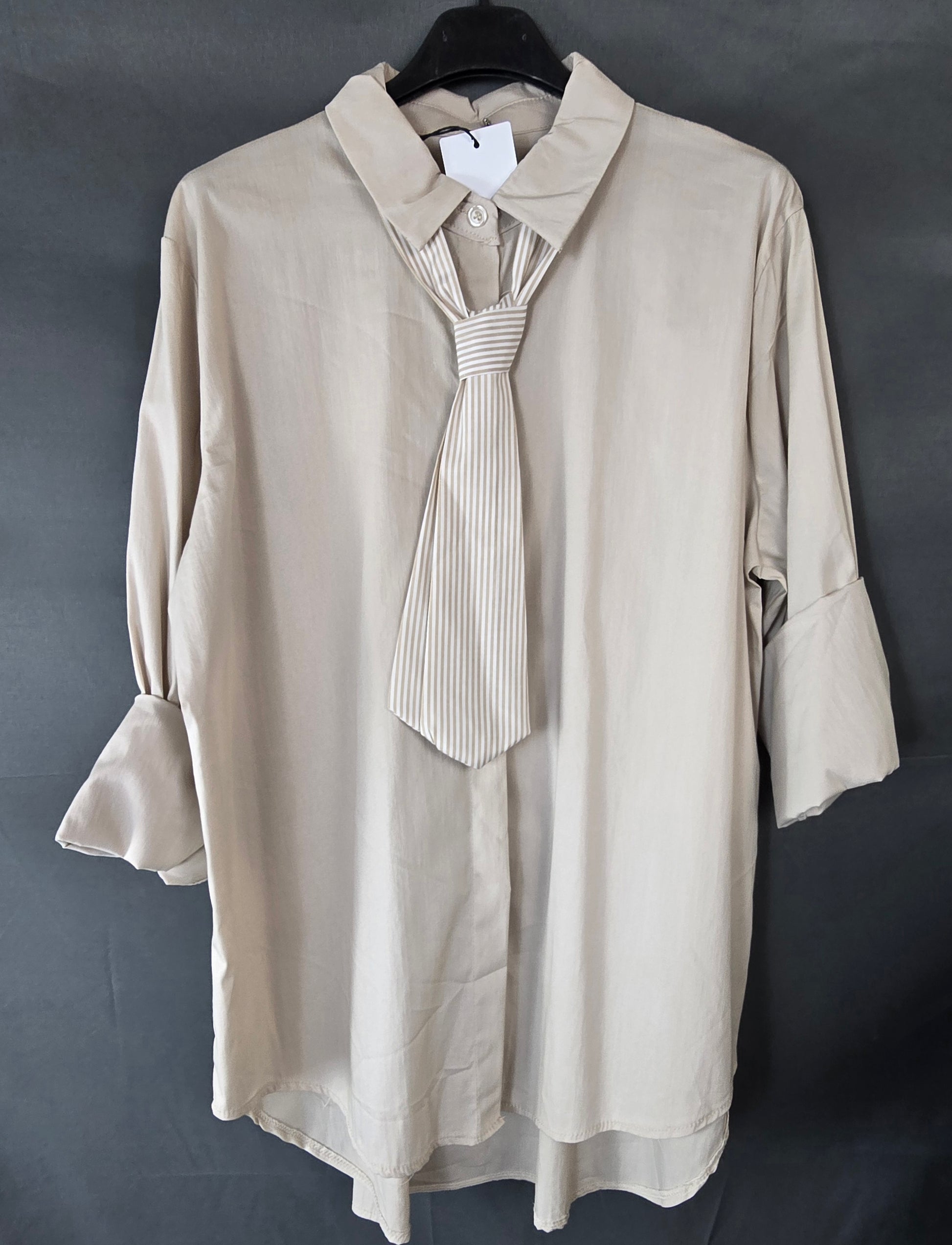Deze stijlvolle blouse in een zachte tinten straalt elegantie en verfijning uit. Het ontwerp wordt gekenmerkt door een subtiel geïntegreerde stropdas die een chique en unieke uitstraling geeft. Perfect voor zowel zakelijke outfits als een stijlvolle casual look.