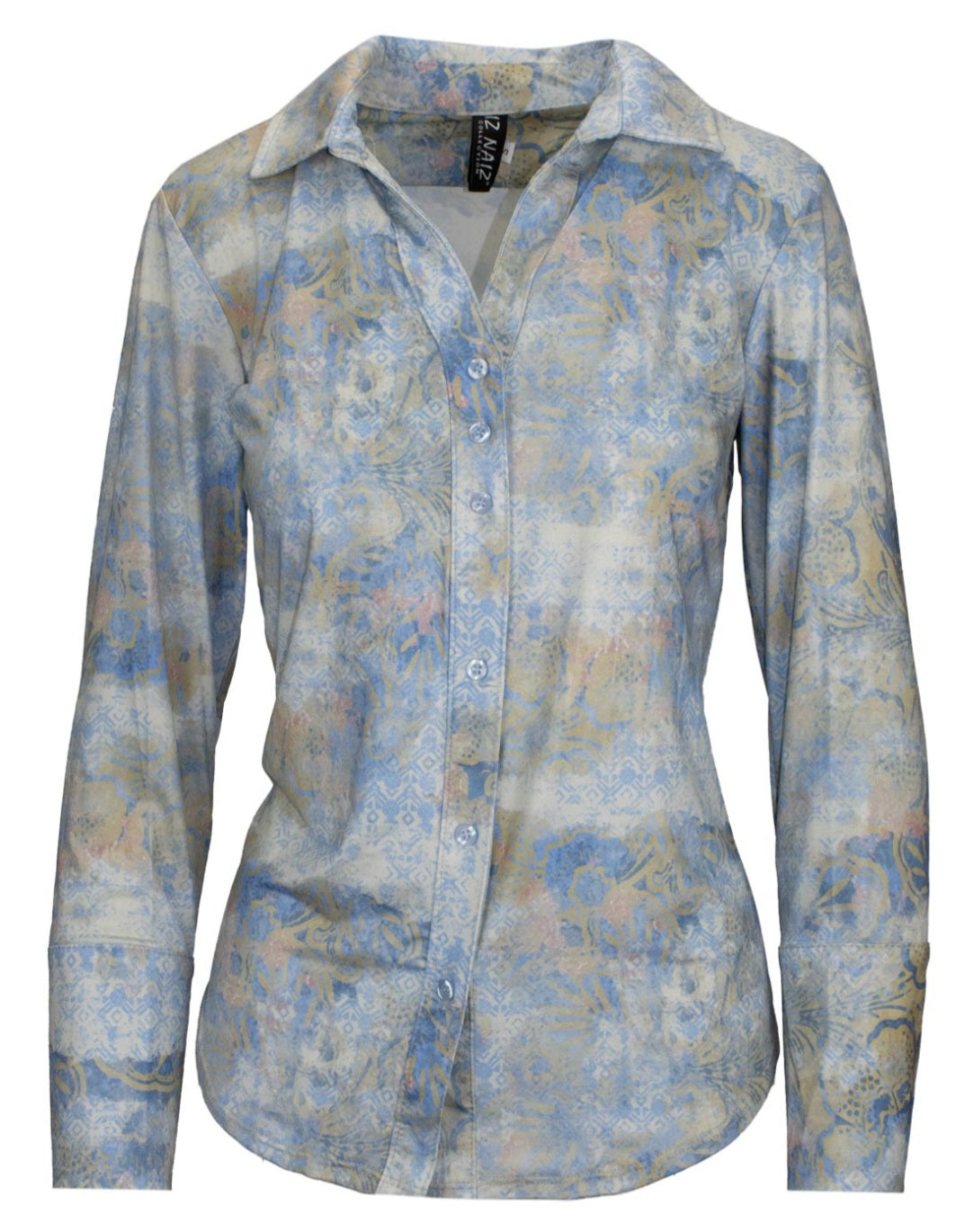 Het klassieke kraagje en de doorlopende knoopsluiting geven de blouse een tijdloze look, terwijl de licht getailleerde pasvorm mooi aansluit op het lichaam. De lange mouwen met manchetten maken het ontwerp compleet en zorgen voor een nette afwerking.