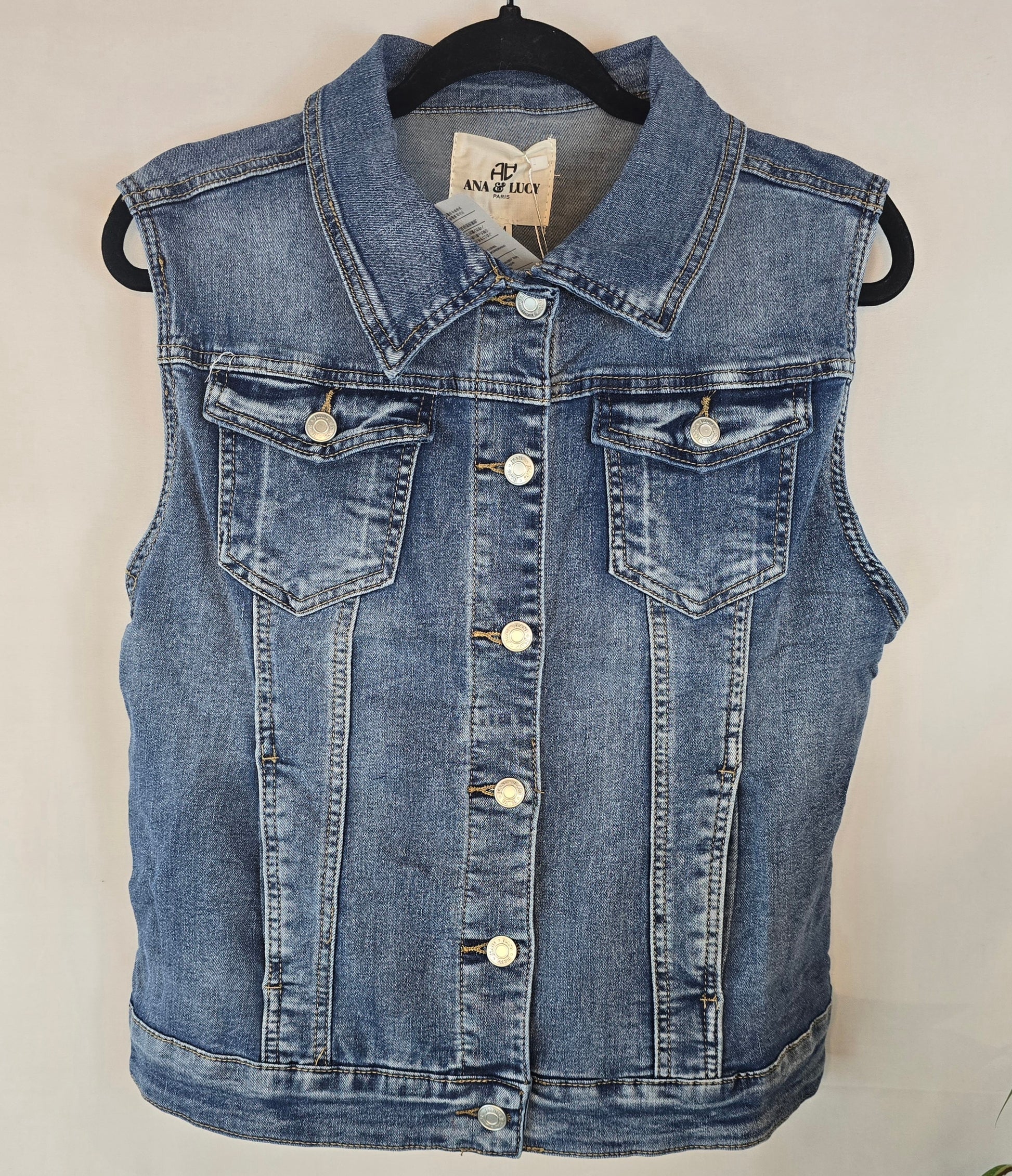 Dit denim gilet is een veelzijdig en stijlvol item dat niet mag ontbreken in je garderobe. Het gilet is uitgevoerd in een klassieke mediumblauwe wassing en gemaakt van stevig maar comfortabel denim. De mouwloze uitvoering maakt dit item perfect om laagjes over een blouse, jurk of T-shirt te dragen.