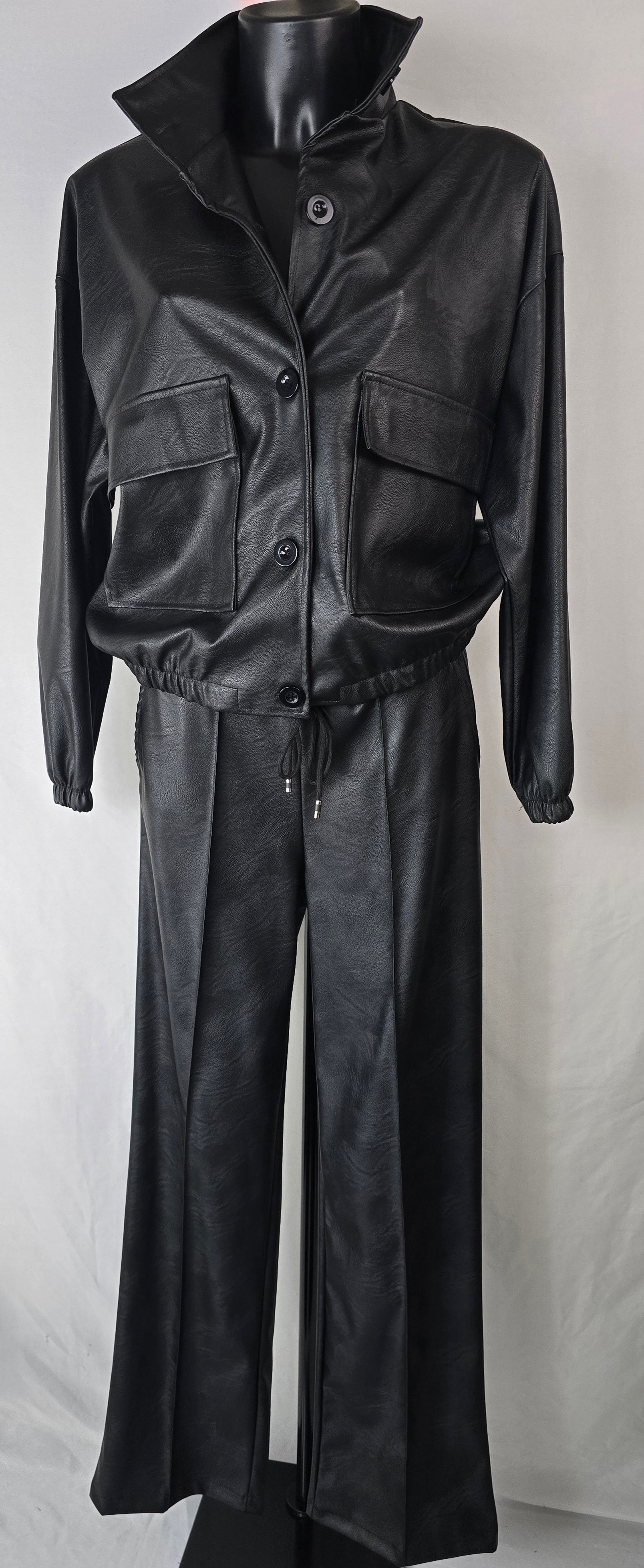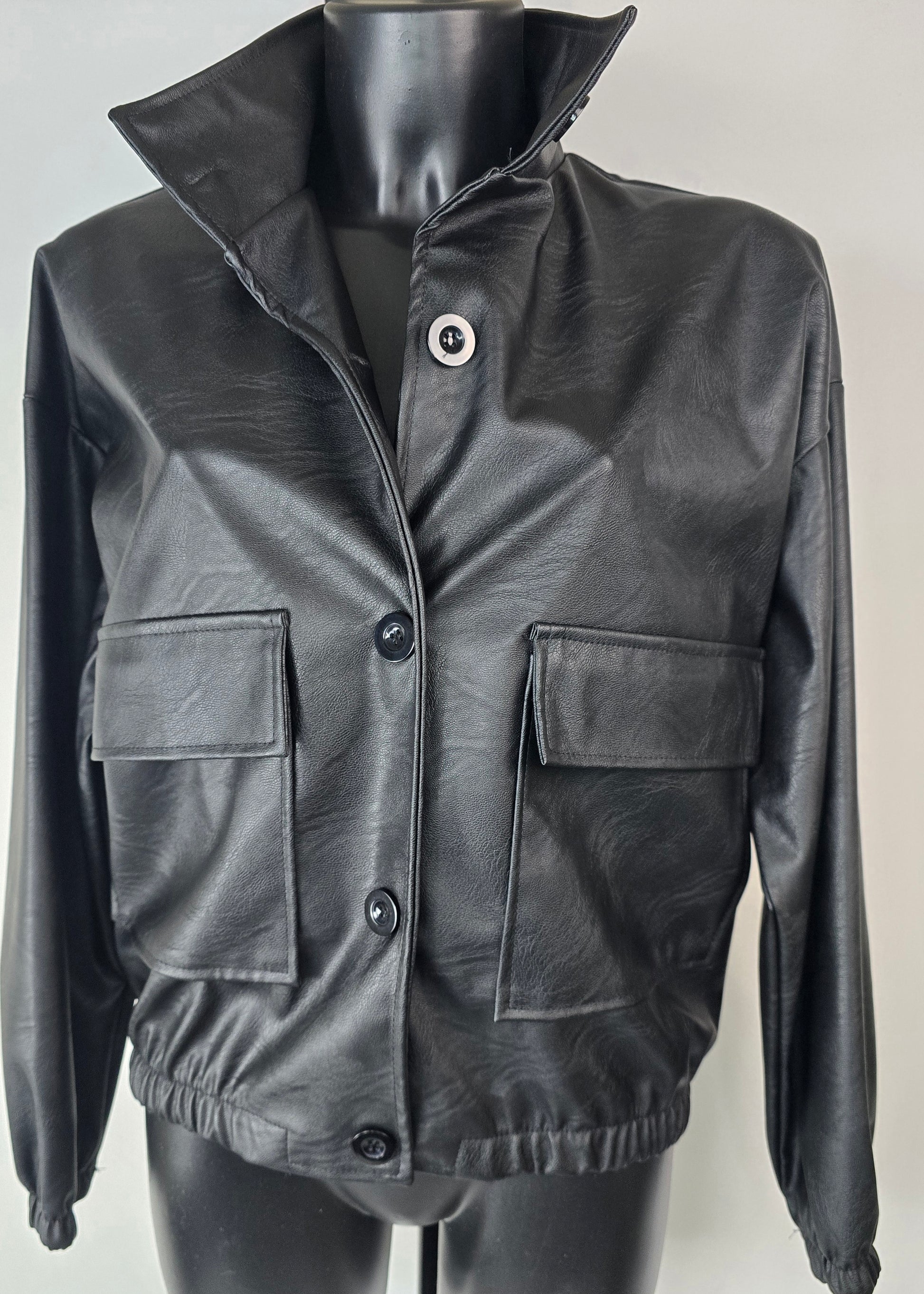 Deze stijlvolle zwarte jas met moderne leerlook verspreid comfort en klasse. Voorzien van een opstaande kraag, grote klepzakken en een elastische zoom voor een dubbele bomber-fit. De zachte, soepele stof geeft een luxe uitstraling waardoor deze jas gemakkelijk geschikt is voor zowel casual als geklede outfits.
