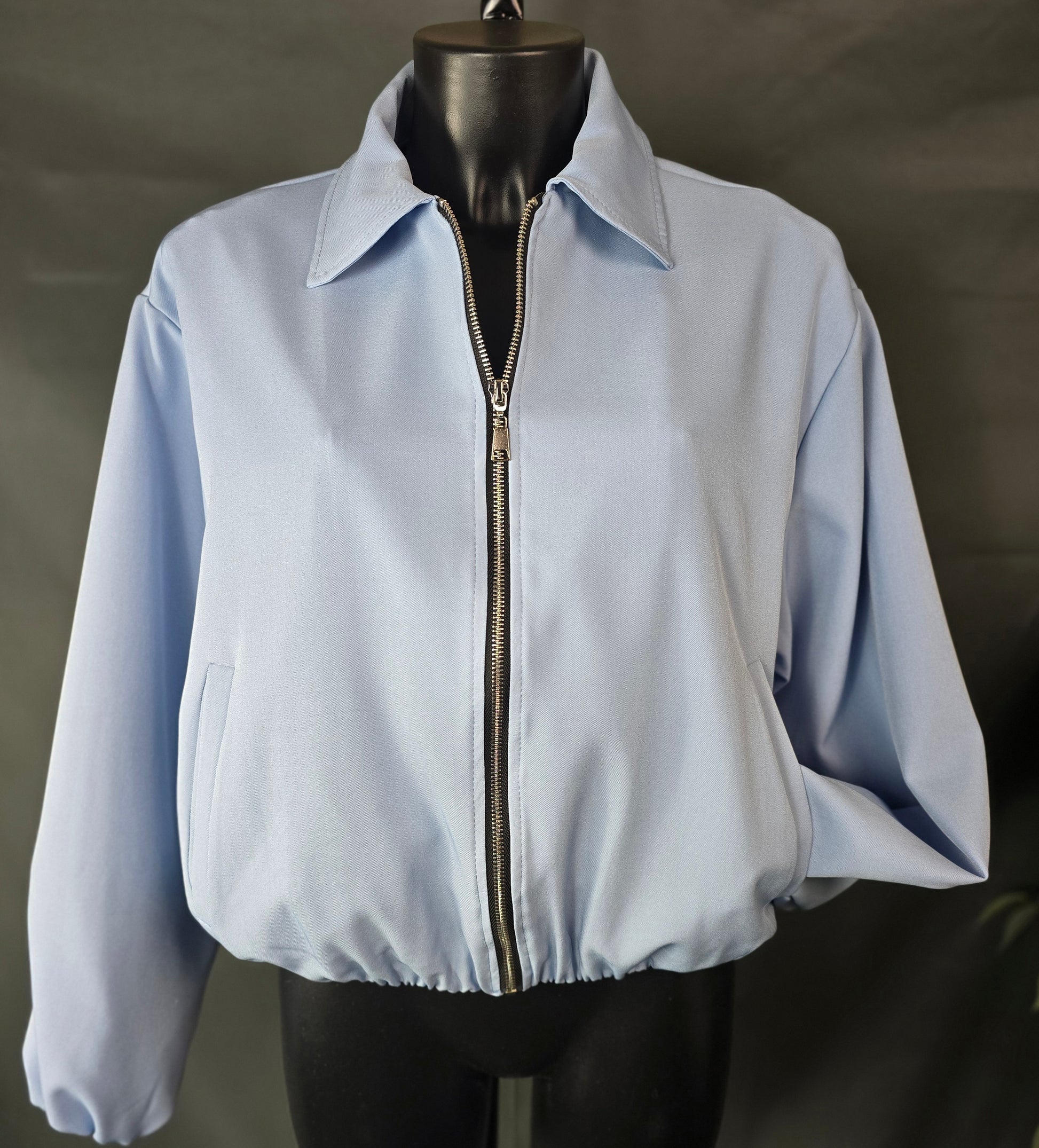 Het jasje is voorzien van een zilverkleurige ritssluiting aan de voorzijde en een klassieke kraag, wat zorgt voor een moderne maar tijdloze look. De elastische boord aan de onderkant geeft het jasje een licht bloezend effect en zorgt voor een mooie pasvorm. De subtiele steekzakken maken het ontwerp praktisch én stijlvol.