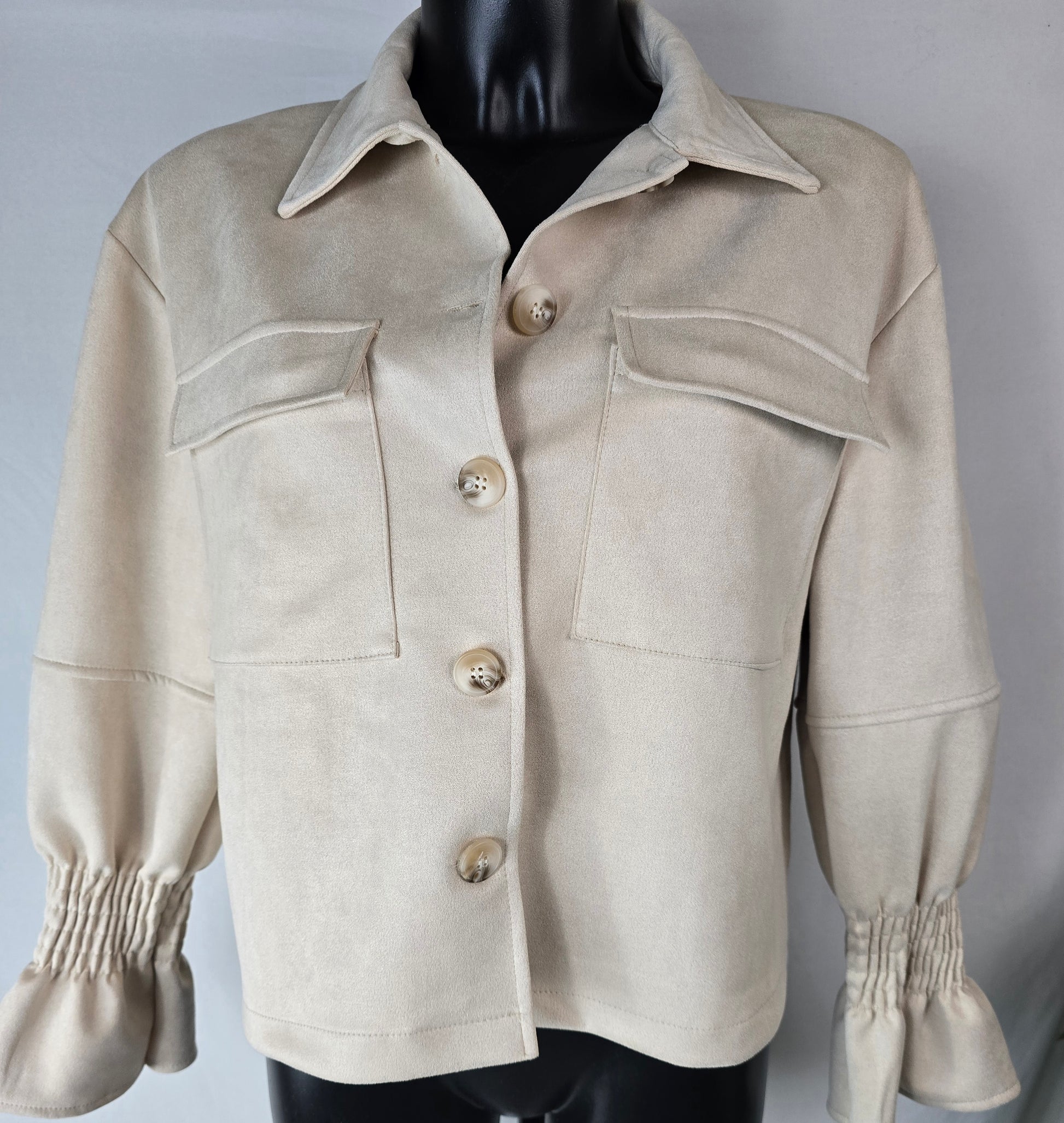 Deze elegante Jas heeft een verfijnde en moderne uitstraling. Het model is uitgevoerd in een zachte, licht transparante stof met een subtiel reliëfpatroon dat zorgt voor een luxe look. De ronde halslijn is afgewerkt met een fijne knoopsluiting aan de voorzijde.
