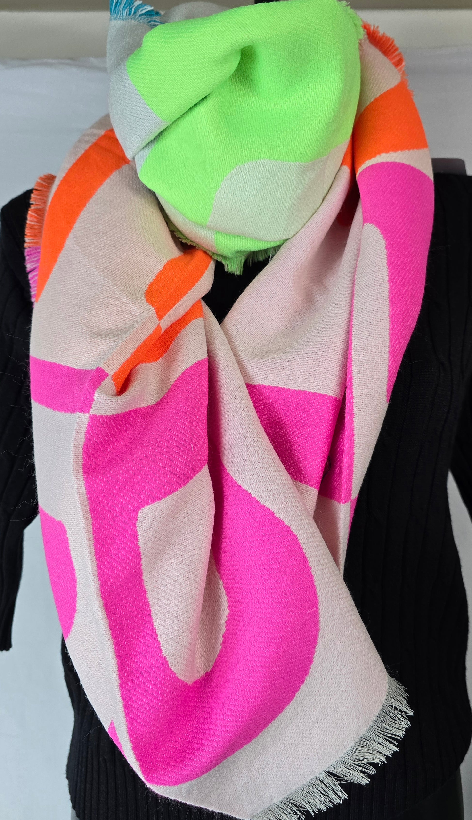 Voeg kleur en warmte toe aan je outfit met deze prachtige, meerkleurige sjaal. Een stijlvol accessoire dat niet alleen heerlijk comfortabel is, maar ook direct zorgt voor een vrolijke en modieuze uitstraling.