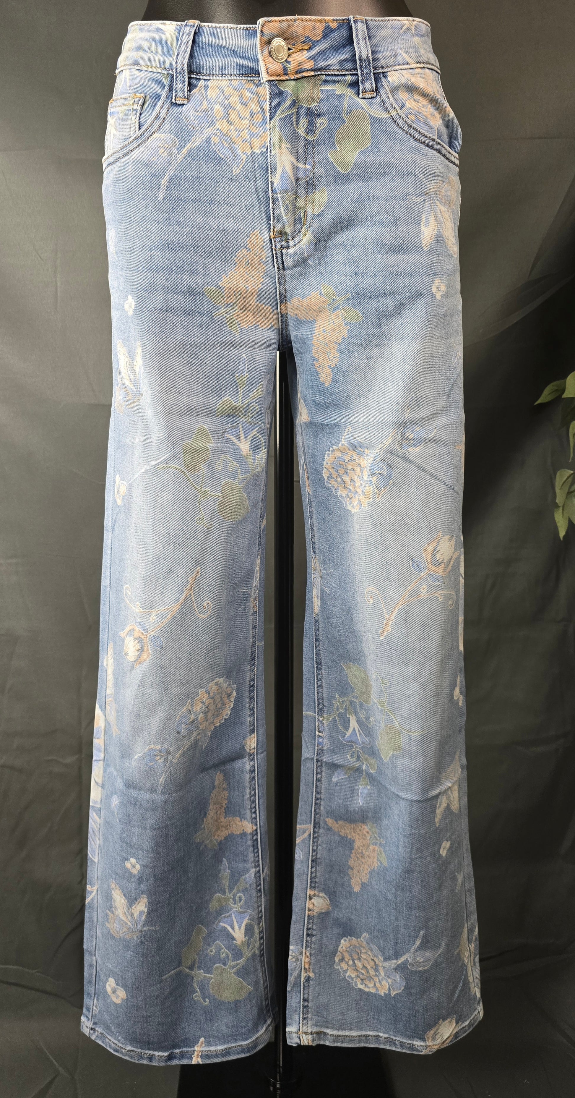 Deze lichtblauwe jeans met subtiele bloemenprint is een echte eyecatcher voor je garderobe. De zachte, vintage wash gecombineerd met het botanische patroon geeft de broek een frisse, romantische uitstraling. Perfect om casual te dragen, maar ook leuk te stylen met een blouse of blazer voor een meer geklede look.