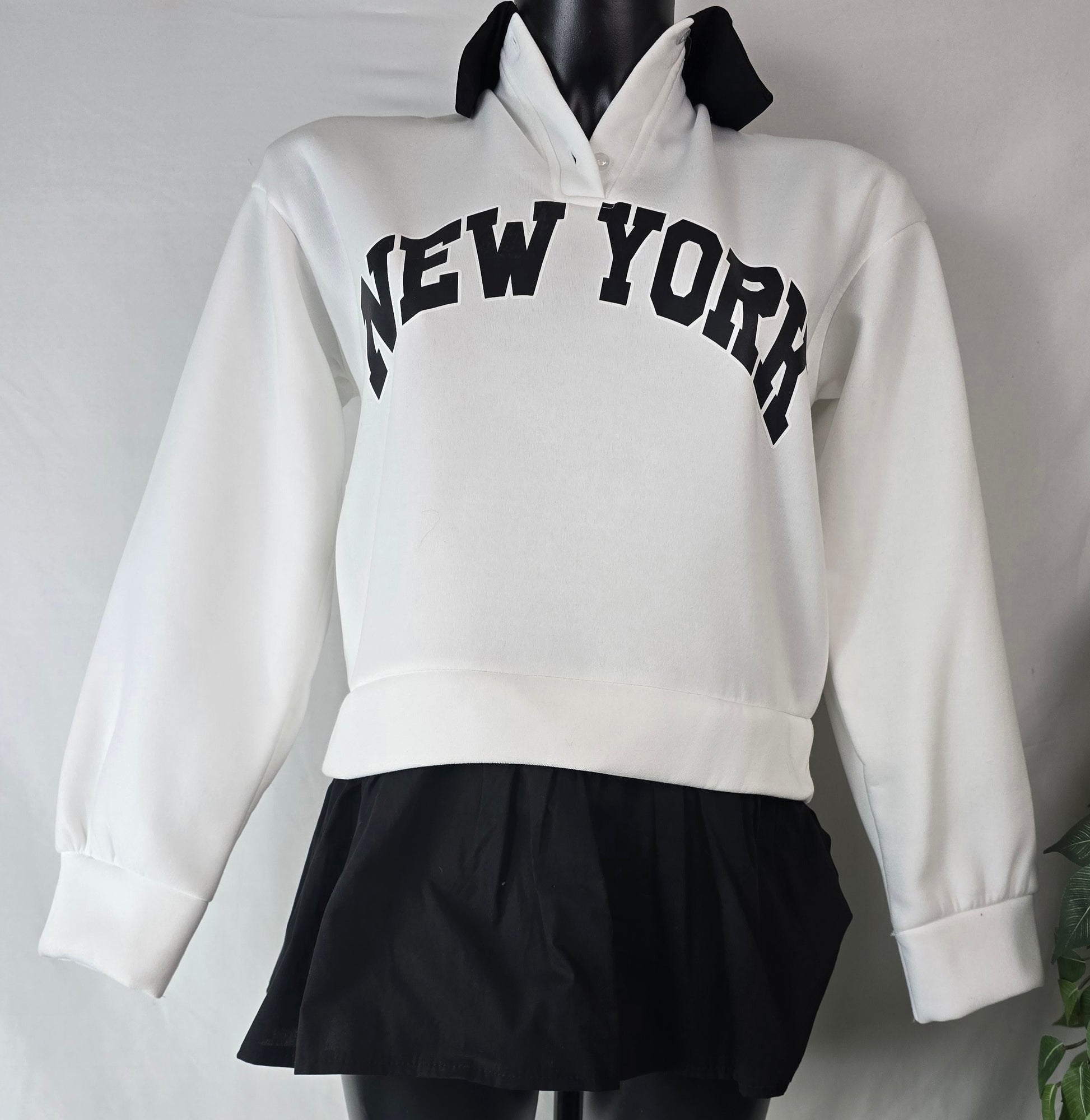 Deze stijlvolle trui met opvallende “New York” print is een perfecte mix van comfort en urban fashion. De contrasterende zwarte opdruk geeft de trui een stoere, moderne uitstraling die krachtig past bij elke casual outfit.