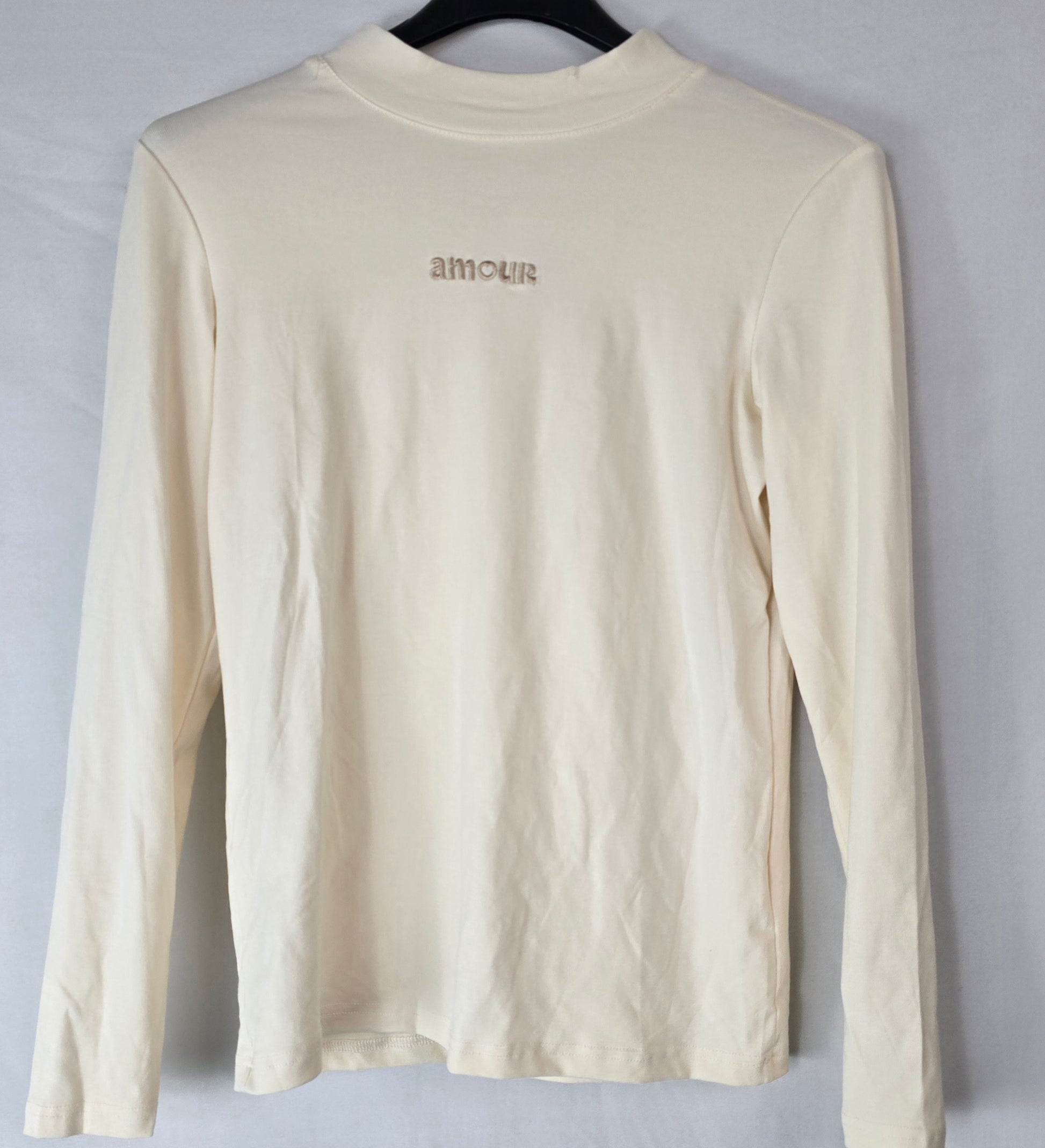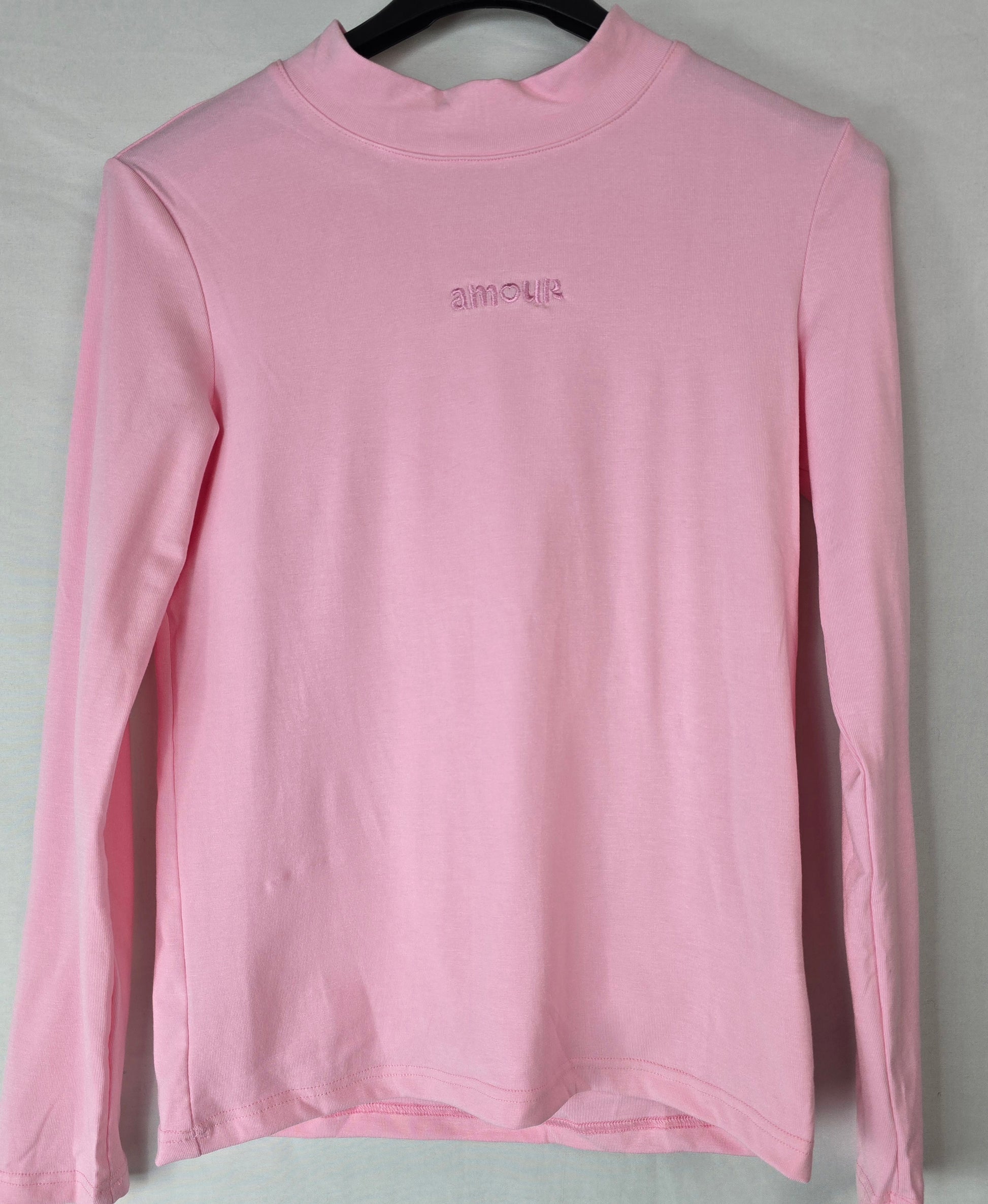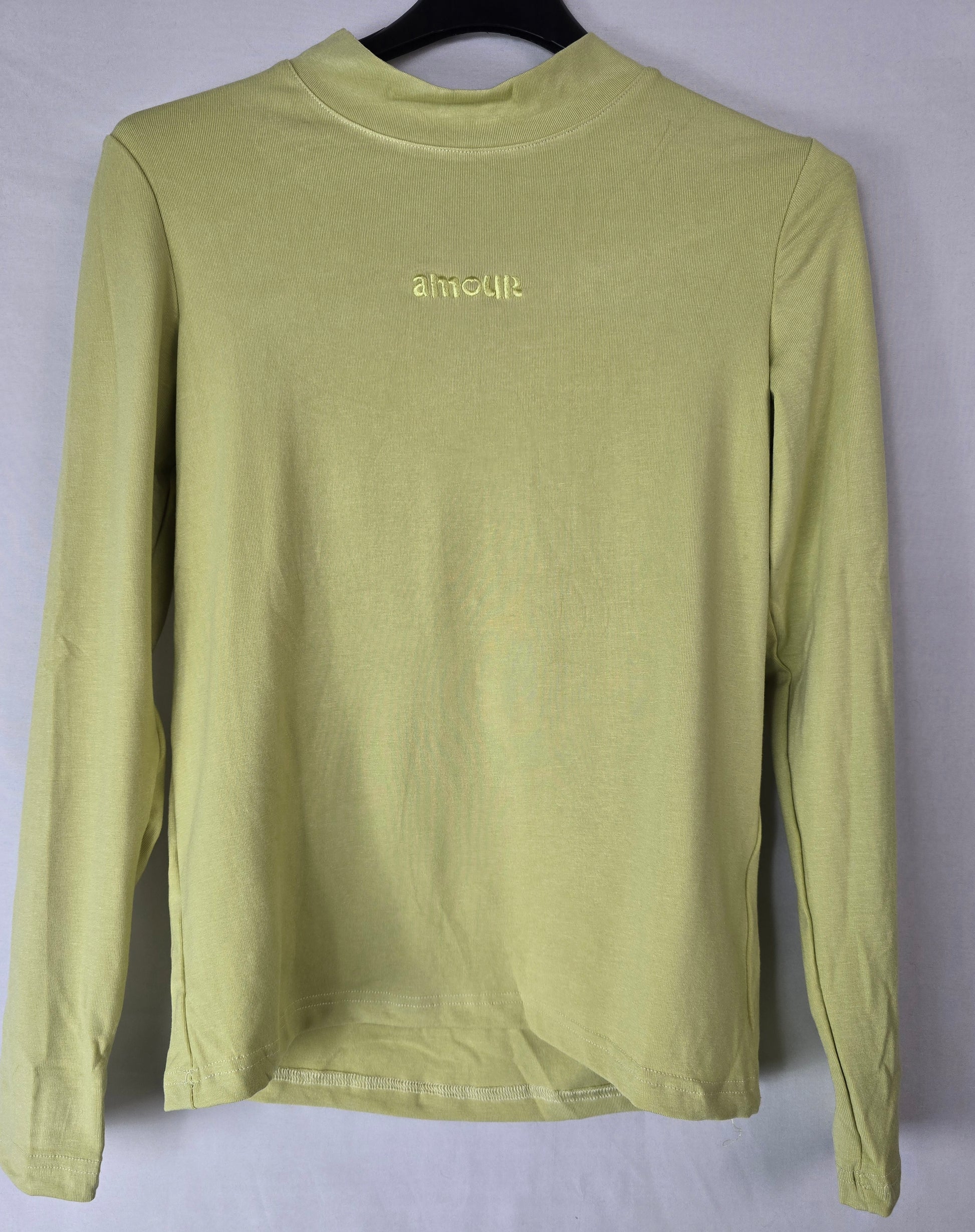 Deze stijlvolle longsleeve is een perfecte basic met een romantische twist. De zachte groene kleur geeft de top een frisse, moderne uitstraling, terwijl het subtiele 'amour' borduursel op de borst zorgt voor een speels en gedetailleerd detail.